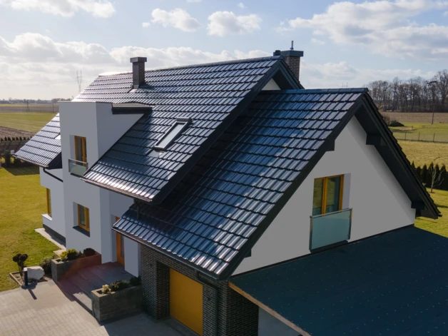 Якщо у вашому будинку один або два скати, вибирайте черепицю великого формату (наприклад, TITANIA, SIMPLA). Пряма поверхня без додаткових елементів буде чудовою основою для такого роду моделей. Велика перевага черепиці великого формату — те, що її можна використовувати в невеликій кількості для покриття великої площі покрівлі. Це знижує витрати на покриття, значно полегшує роботу покрівельника та пришвидшує монтаж. Також таке покриття буде дуже естетичним і сучасним. Щоб забезпечити потрібну кількість, майте на увазі, що й маленька, і велика черепиця розміщуються в напуск — тому, коли ви робите покупку, зважайте на відстань між кроквами.